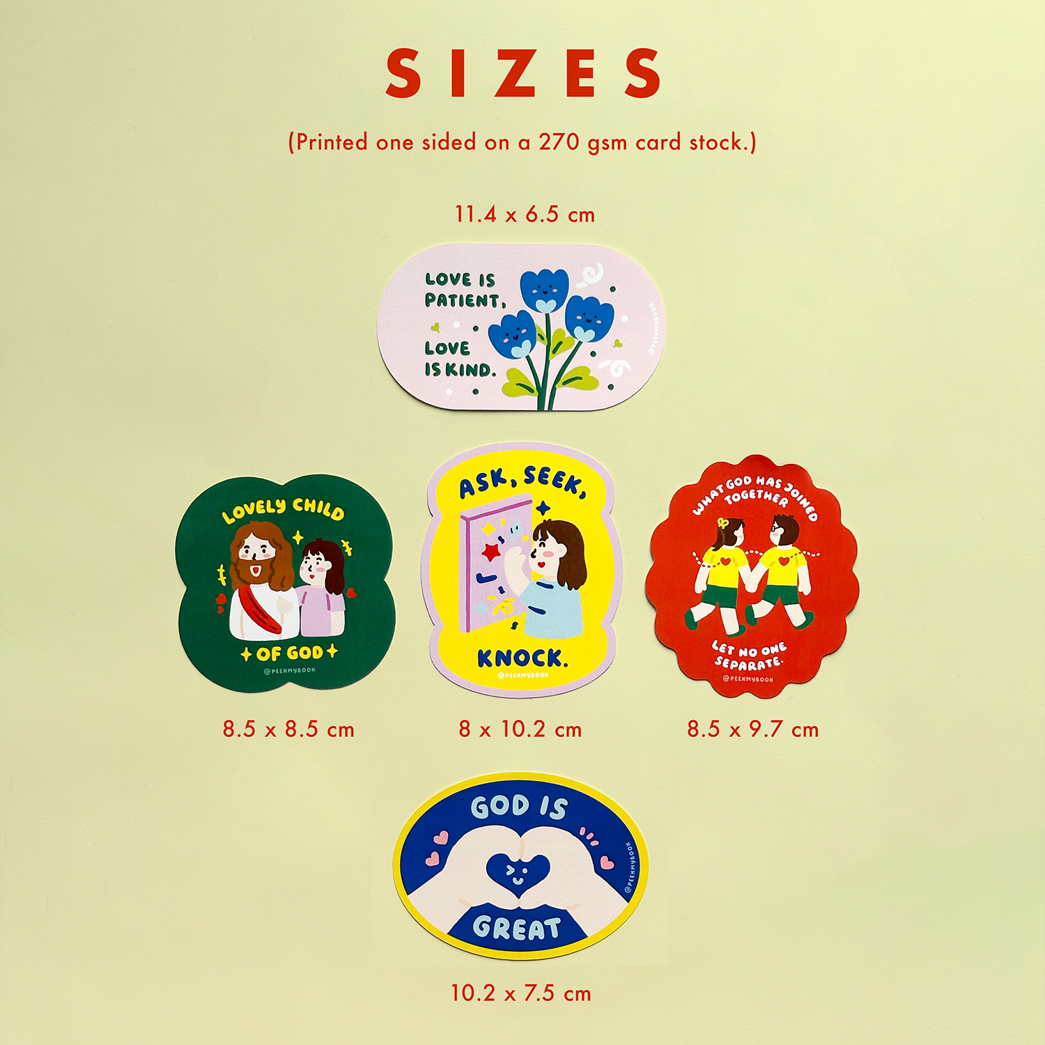 A 3-in-1 bookmark, greeting card, and wall decor piece from our latest collection, Grace & Goodness—a beautifully illustrated set featuring inspirational Christian quotes, perfect for encouraging notes, gifts, or thoughtful messages. 1 Set consists of 5 different cards; not to be sold separately.